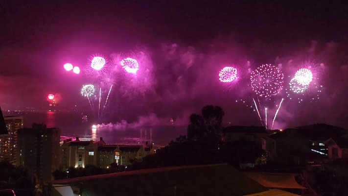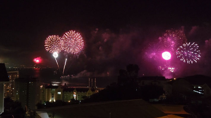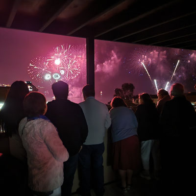 nach dem Essen gehen wir hoch in den 2. Stock um von der Terrasse das Spektakel zu sehen.